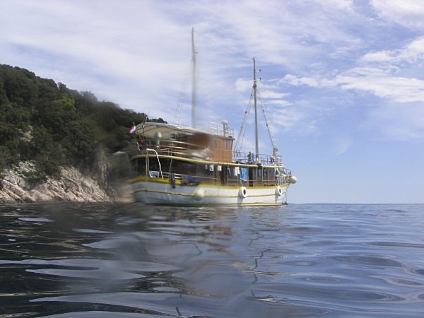 přejezd autem do Šila a odtud lodí pokračujeme na vrak Peltastisu. Jak