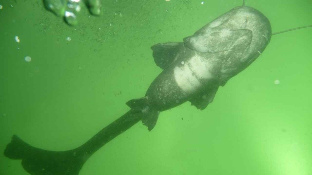 Ponaučení z akce: Potápět se dá i s hloubkoměrem od Mikrotechny a dál, že dalamánek není vhodný pro krmení sumců neboť plove ku hladině, sumci za ním a vy tam dole zůstanete sami jak pitomci.
