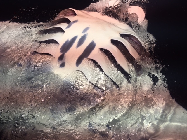 Tento den nás čekaly 4 ponory. Počasí krásné a po večírku jsme měli posunutý budíček na 6.45. První ponor byl na Moofushi rock, za velkých vln jsme se rychle zanořili a pak klesli do 30 metrů, kde jsme viděli útesové žraloky. Čekali jsme i na manty, ale ty se neobjevily, tak jsme ve velmi silném proudu driftovali podél útesu a bylo to jak z vlaku – nezastavovat, máme zpoždění… Druhý ponor na Ran Faru, zde původní plán díky opět silnému proudu, nevyšel. Jedeme k útesu a rychle se noříme opět do 30 metrů a vezeme se s proudem kolem útesů a převisů, která byly po stěnách a na stropu posety pomněnkově modrými korály. Viděli jsme rejnoky, želvu, spícího žraloka pod převisem. Ke konci ponoru byl i otáčivý proud, což bylo trochu nepříjemné. Třetí ponor byl na vrak rybářské lodi, na Fesdhu Wreck. Byla to uměle potopená střední rybářská loď, před cca 15 lety. Makáme proti šílenému proudu, viditelnost špatná. Vrak nic moc, pak se vezeme podél útesu. Vidíme ropušnici a menší rybky a korály. Následuje přejezd do zátoky Fesdhu Lagoon, kde nás čeká druhý noční ponor, tentokrát na manty. Po zakotvení posádka namíří na hladinu velký reflektor a během chvíle se na hladině objeví první manta, kterou světlo přilákalo a začíná se nám předvádět na hladině. To je signál honem do výstroje a jdeme dolů přímo z potápěčské lodě zakotvené u jachty. Dive mastři připravili dole baterky, zapíchali je do písečného dna světlem vzhůru a pak nás po body teamech umístili na dno do půlkruhu v hloubce 11 metrů a koukali jsme na úžasné představení, kdy 3 manty plavaly nad světly tam a zpět, dělaly výkruty, předváděly se a v podstatě byly na dotek. Po 45 minutách jsme ponor ukončili, ale manty se i nadále předváděly na zádi lodi u hladiny pod reflektorem výkruty a kotouly. Dokonce se objevil i žralok fouskatý a rejdil kolem lodi. Viděli jsme i vzácnou manta tyger shrimp.