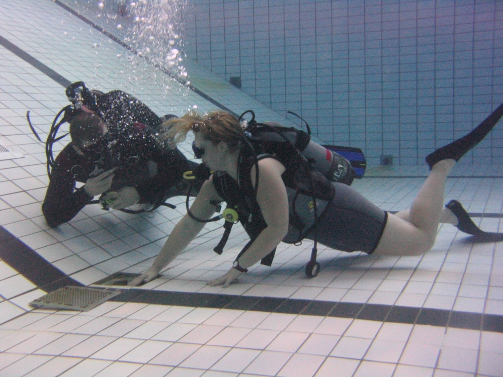 Dívka na zp čistí s Valerem dno.