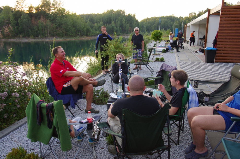 Prázdninový víkendový výjezd autem za potápěním s večírkem a repráčkem.