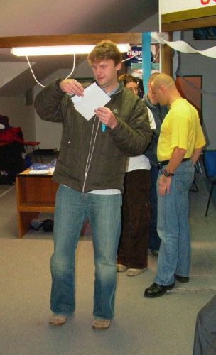 Docela nás překvapilo, jaký problém dělal maskám hovering ve vymezeném prostoru, asi 1,5m vysokém. Běh byl o moc lepší i když bez rukou to nebylo nejlehčí. Nu a udělat bláznivý obličej, to zvládl bravurně každý. Vítězové byli odměněni, ostatní pochváleni a pokračovali jsme u šiši a kytary až do brzkých ranních hodin. Večírek se povedl a propálený koberec v pelešárně nám ho bude na dlouho připomínat :-)