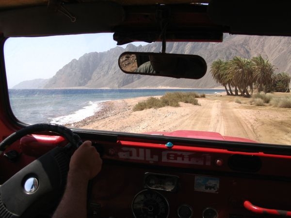jeepy na Blue Hole odkud nás beduíni naložili včetně výstroje na