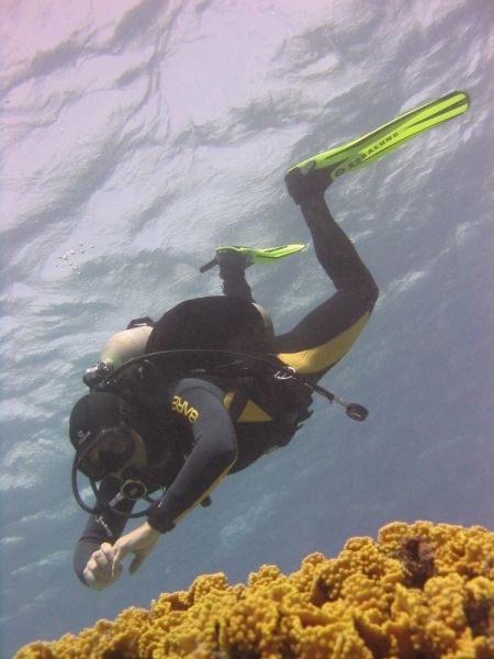 pobyla, rozhodla se mě následovat na hladinu, kde jsme se spolu