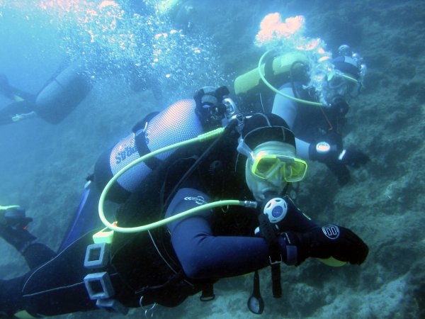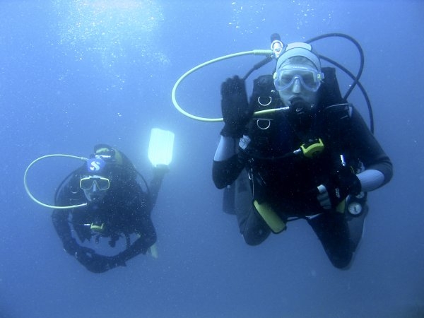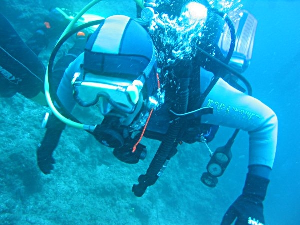 vyrážíme na první dive ze břehu. Teplota vody podle Suunta nepřekračuje