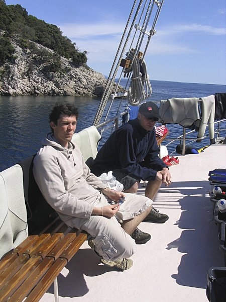 přejezd autem do Šila a odtud lodí pokračujeme na vrak Peltastisu. Jak