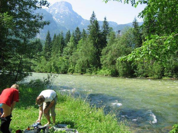 vyplivnutím do Hallstadtského jezera - k vidění mníci, pstruzi, peřeje,