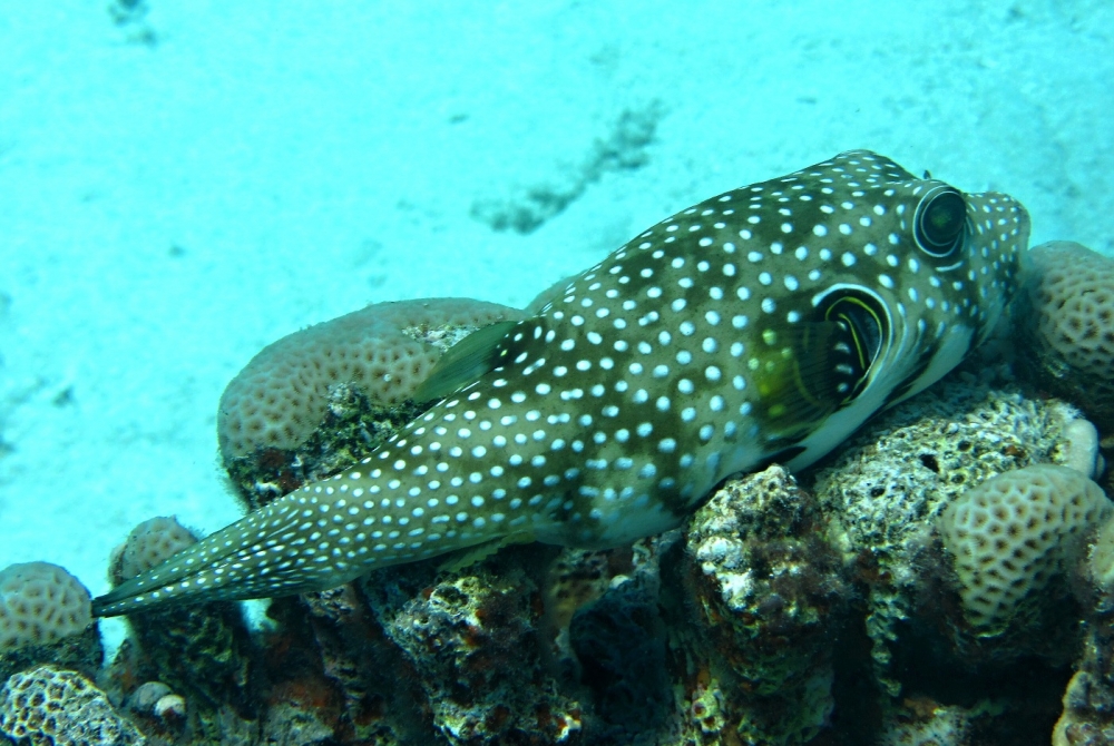 Jdeme výš a kopírujeme po levé ruce korálový reef. Pak se přehupujeme přes sedlo a jsme v pískovém bazénu, kde by na nás měli čekat tuňáci. Ale nic. Zřejmě se nám neschovali, ale asi umřeli, nebo odjeli na dovolenou s cestovní kanceláří Rio Mare.