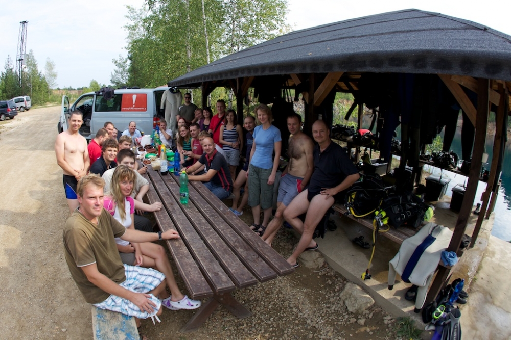 Třicetičlenná skupina potápěčů z Brna obsadila běhěm víkendu dno Polského Grodku. Podařilo se uhájit všechny pozice (letadlo, 2 bagry, 2 auta, mostek i přilehlá stavení). V průběhu byl náš tým posílen o nové potápěče. Zásoby potravin a tekutin dodaly během noci sílu na druhý den a díky tomu celá skupina opouštěla zajištěnou lokalitu se ctí.