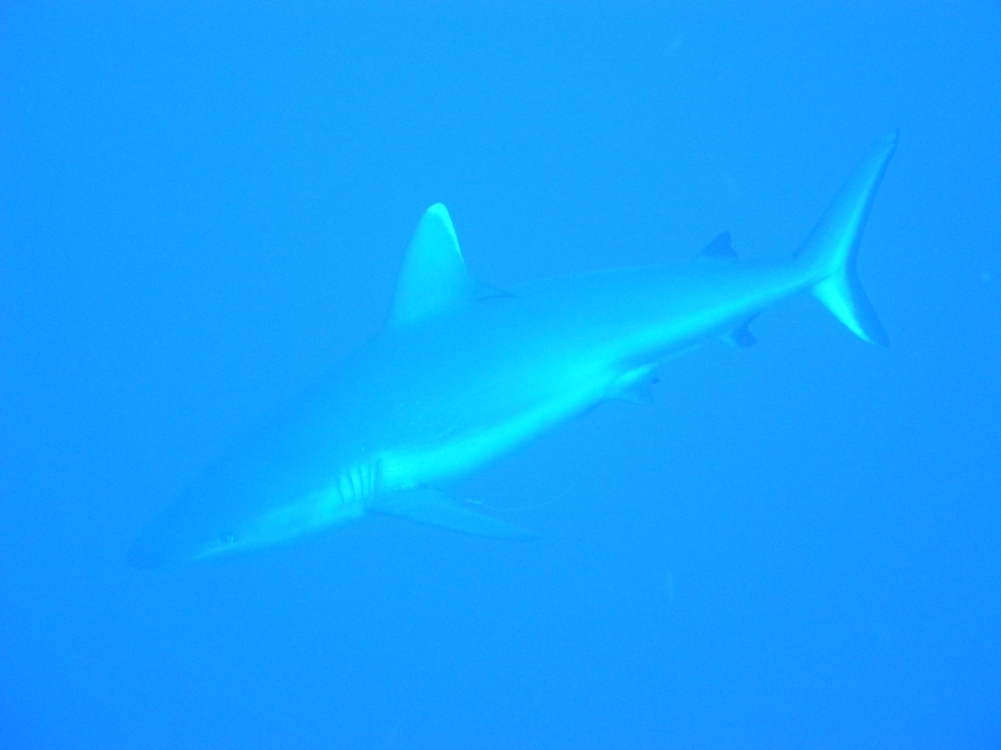 Zodiac nás odváží na východ ostrova, za cíp plata, kde jsme viděli mantu obrovskou. Vidíme tuňáka, taky obrovskýho a hejna rybek a na závěr obrovského žraloka liščího, z kterého jde respekt a strach zároveň. Alespoň já jsem to tak cítil. Pro jistotu si trochu důkladněji properu neopren ve sladké vodě.