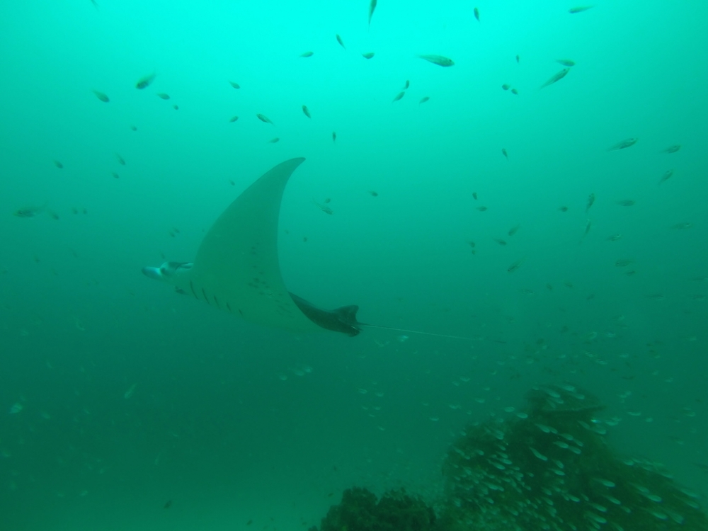 1. Check dive - viděli jsme už zde obrovské manty, hodně z blízka, viditelnost 5m, max. hloubka 22m.