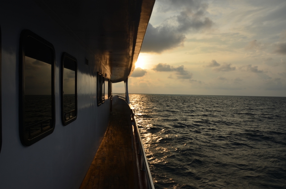 Wake up 6:30- jako odměna je zde poslední ponor. Carpe Diem kotví